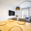 🛋 Salón amplio y muy cómodo, ideal para relajarte o disfrutar de tus series favoritas en su espectacular TV de 75 pulgadas. Además, sus buenas vistas llenan el espacio de luz y alegría.