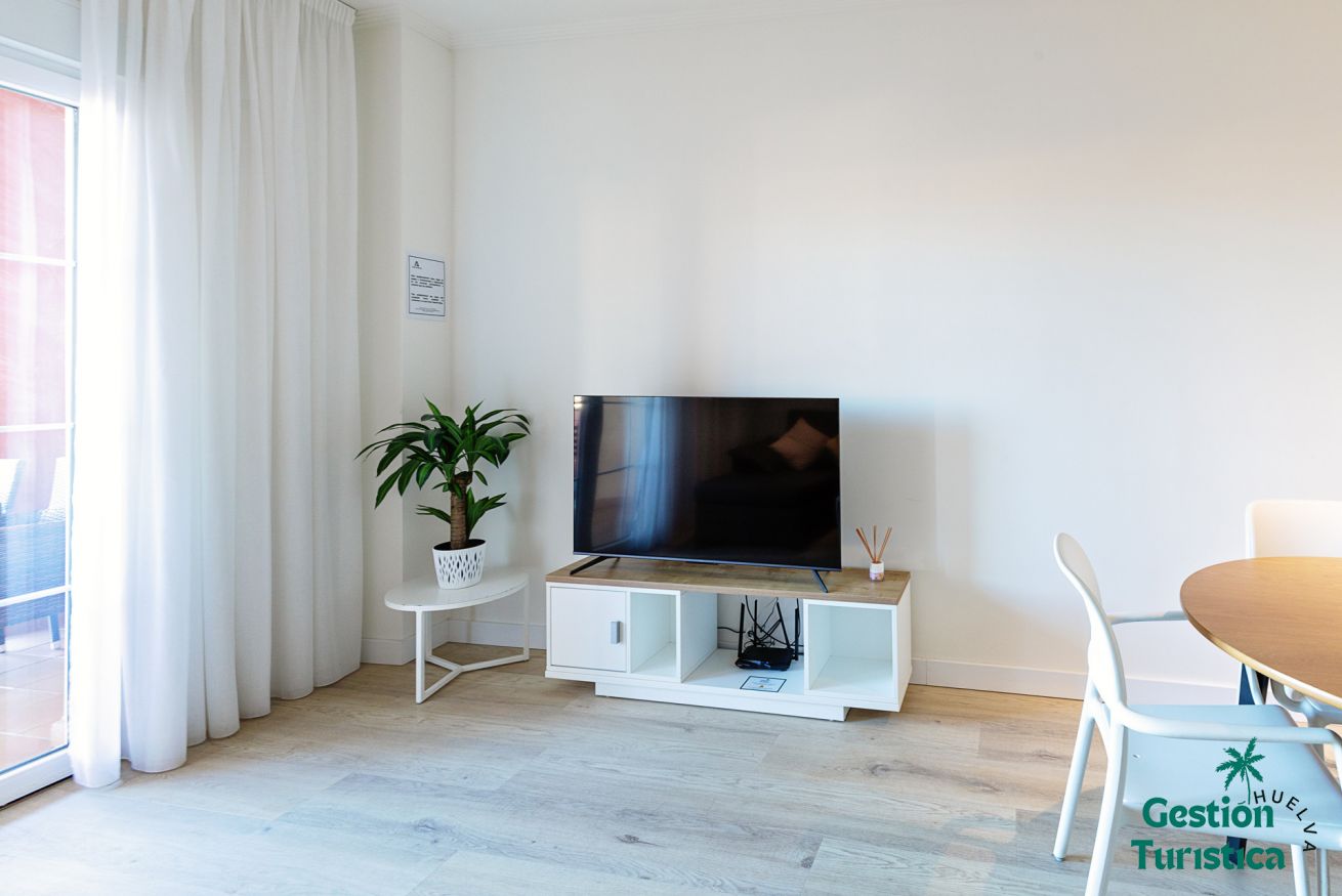 Salón luminoso con Smart TV y mobiliario de calidad