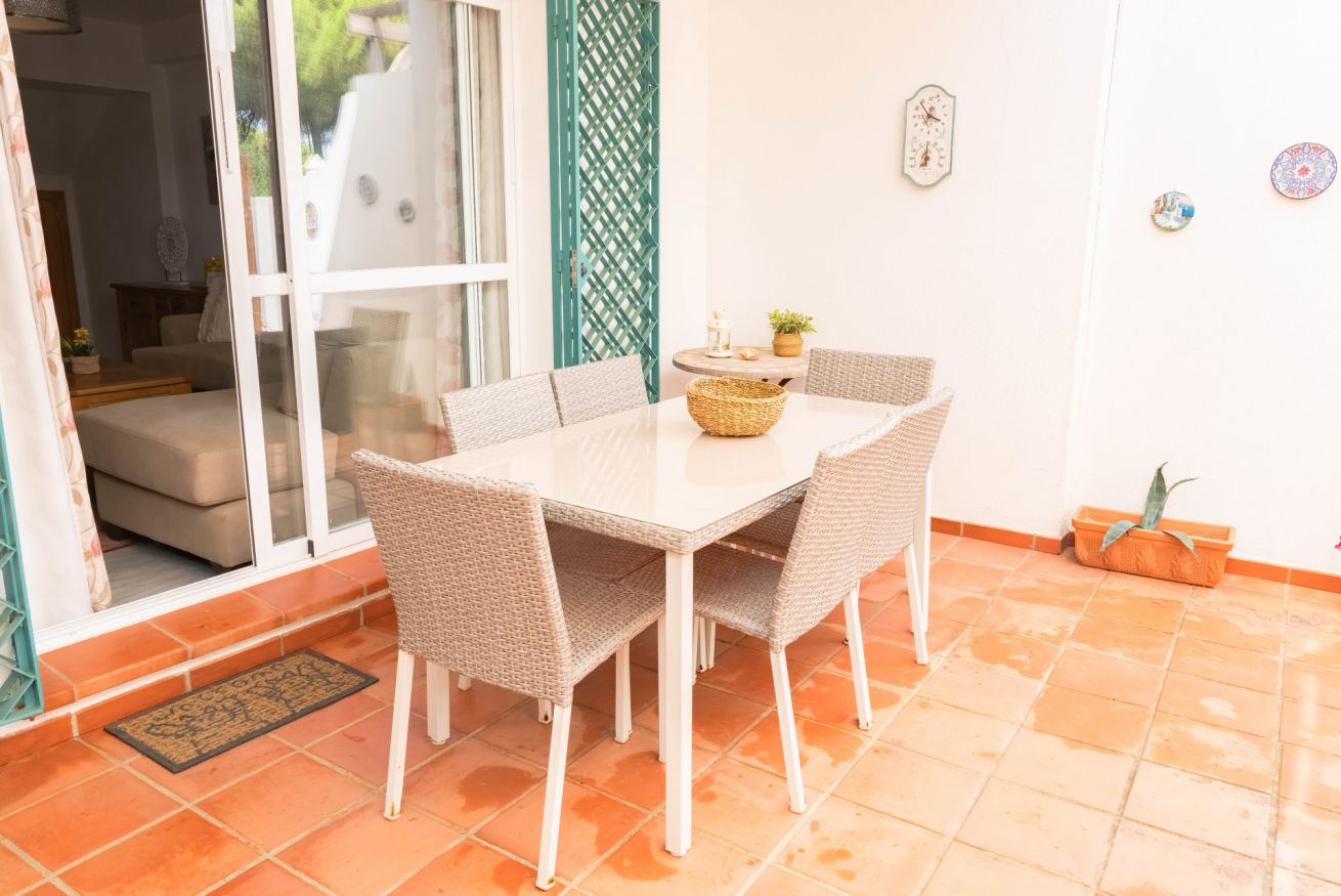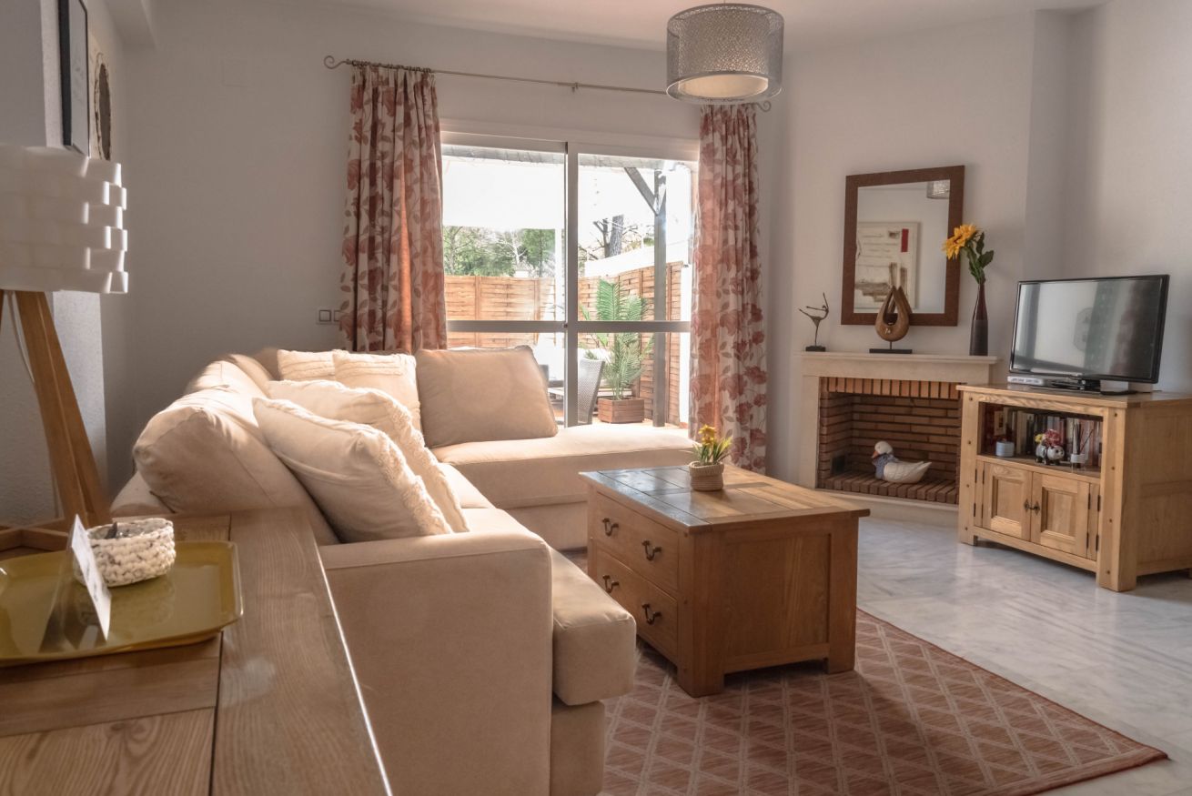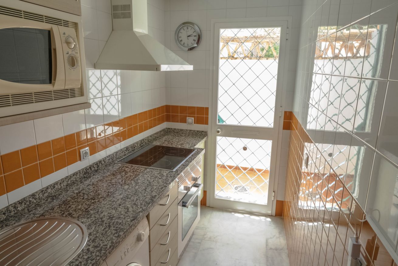 En la planta baja se encuentra la cocina, el salón-comedor, un aseo, un armario empotrado y un patio-porche. La cocina es independiente y dispone de frigorífico-congelador, microondas, horno, placa vitrocerámica, lavadora, lavavajillas, cafetera, batidora y todo el menaje necesario. Capacidad para 6 personas. TV. El patio-porche dispone de mobiliario de jardín.