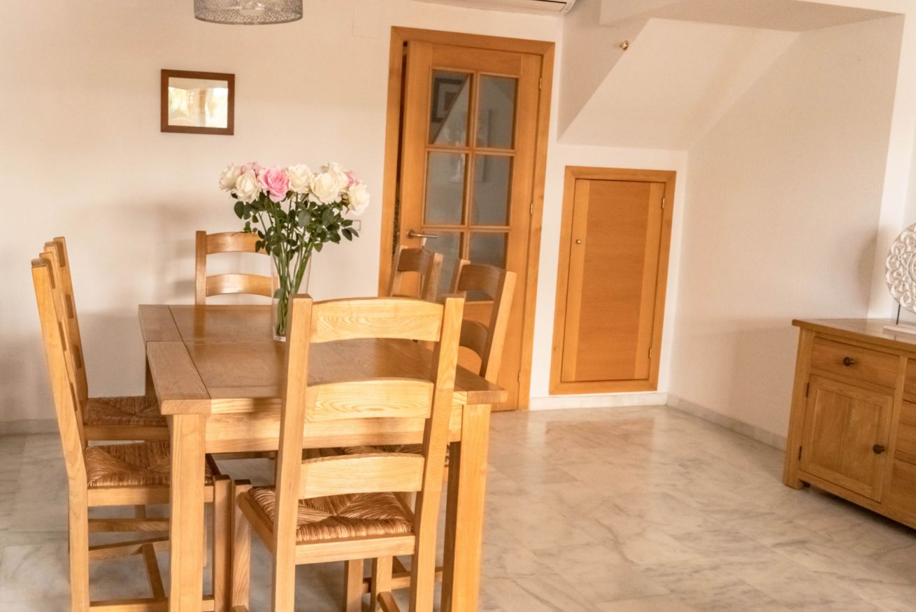 La vivienda fue construida en 2006 y está en perfecto estado de conservación. Cuenta con 175 m² construidos en 3 plantas. Tanto el salón como los dormitorios disponen de aire acondicionado. Todas las terrazas de la vivienda tienen vistas al campo de golf.